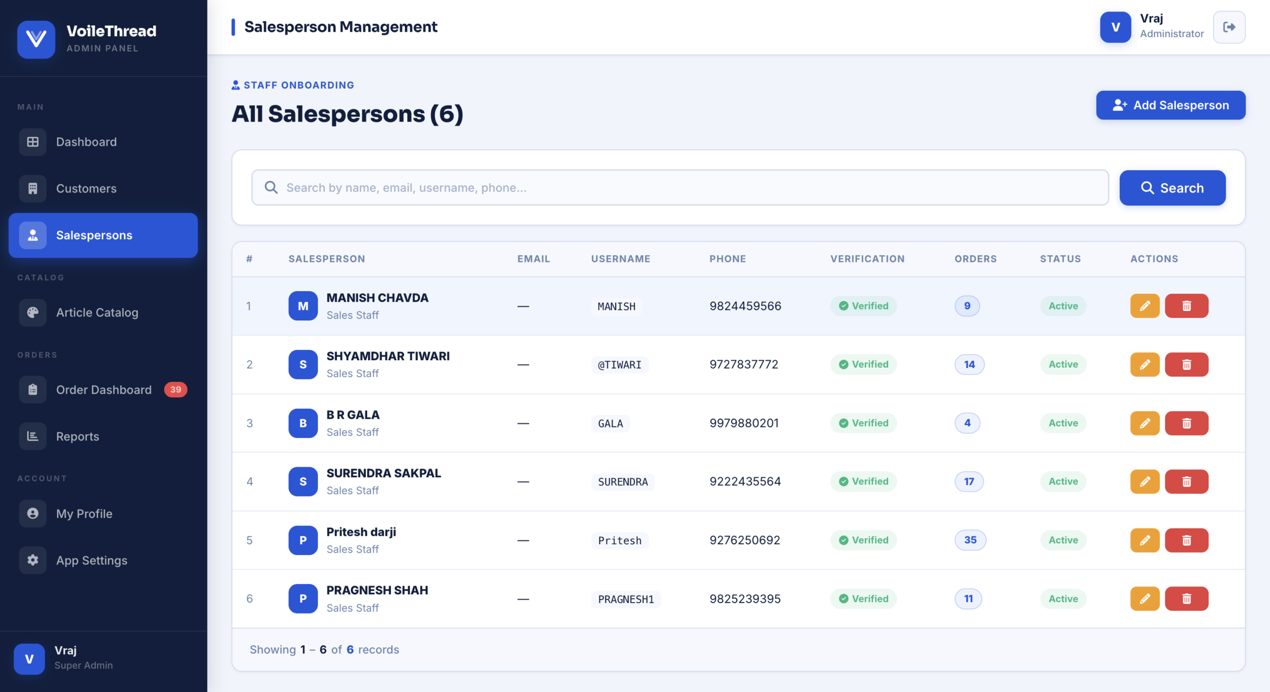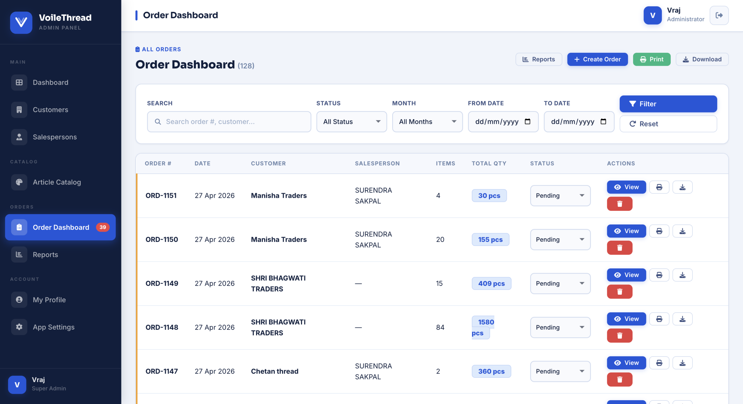 The Voile Thread Ordering System is a streamlined digital platform designed to simplify and accelerate the ordering process in textile businesses.